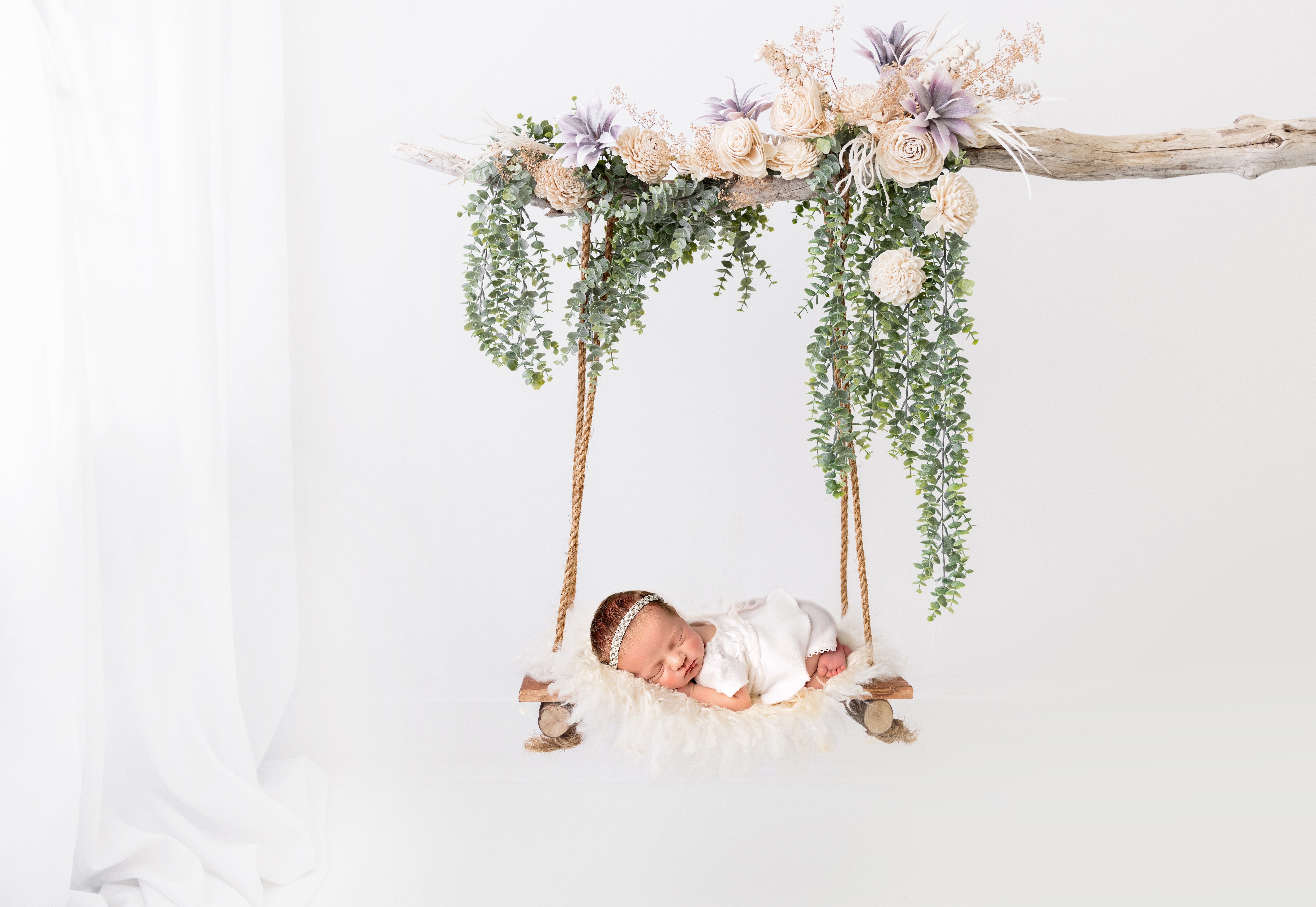 The baby has to be under three-weeks-old, although up to 10 days is ideal. The younger they are, the more cooperative, and easier to pose! My primary goal is to keep your baby happy. I follow their lead and don’t rush. There are plenty of breaks for feedings and cuddles built into your session time. Parents can sit back, relax and watch, while I take care of everything. I have a wide variety of props and outfits for your little one so you don’t have to worry about bringing anything.