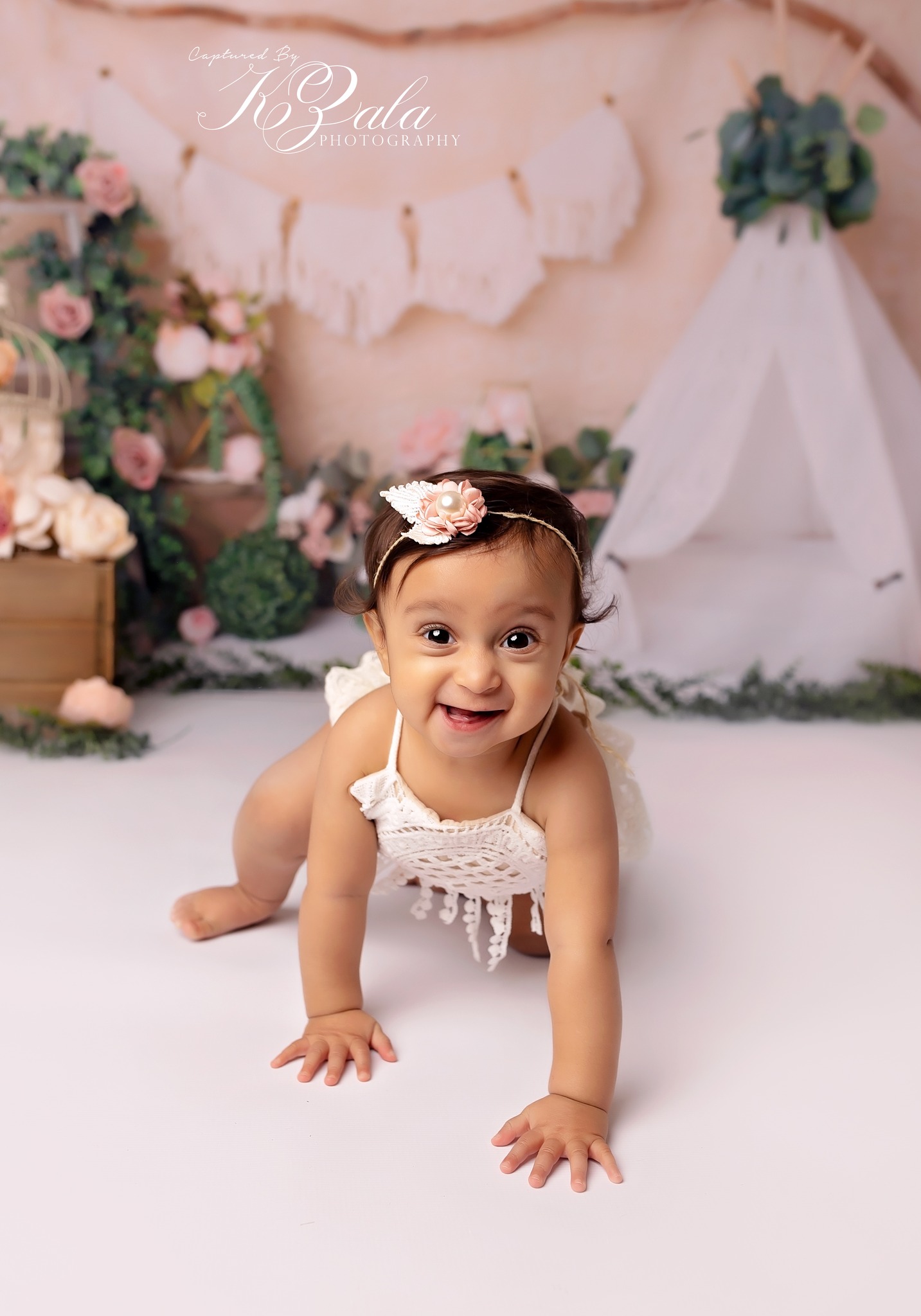 Let me capture your little one smiling at 3 months, sitting without support around 6 months and standing up around 9 months! Siblings are welcome to join the baby.